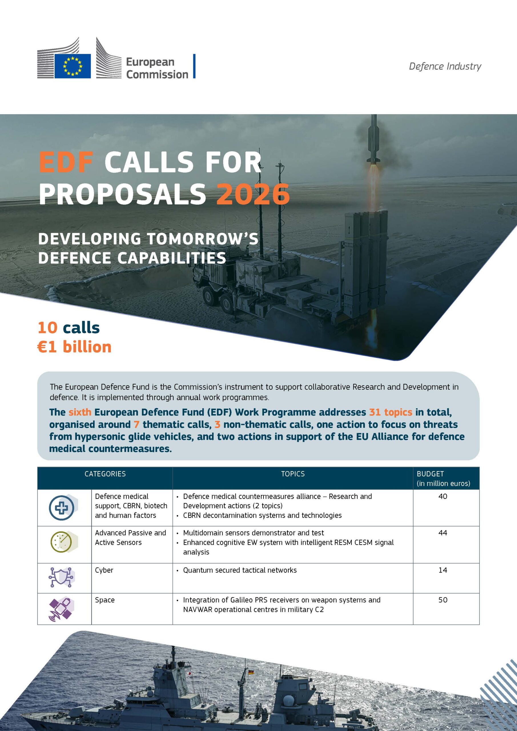 A Directorate-General for Defence Industry and Space da Comissão Europeia (DG DEFIS) anuncia a realização dos European Defence Fund Info Days 2026, nos dias 10 e 11 de março, em formato híbrido, com sessões presenciais em Bruxelas e transmissão online.